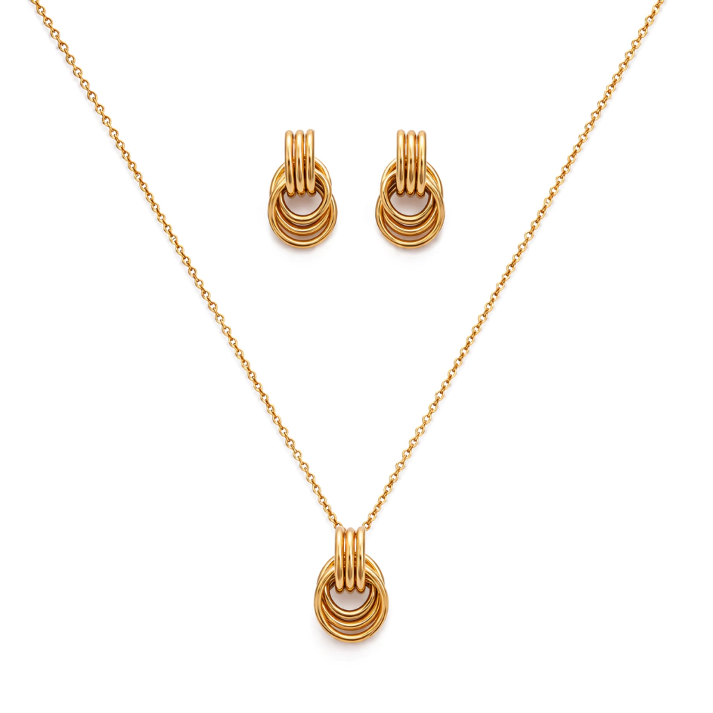 Kit Colar e Brinco Entrelaçado Dourado Aço Inoxidável
