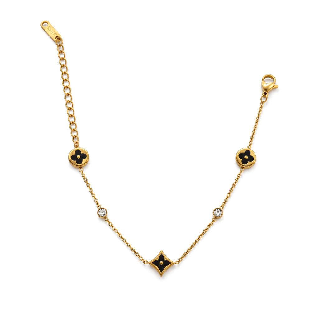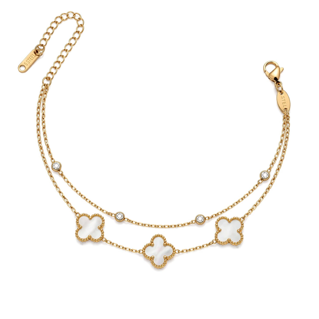 Pulseira Trevo dois Fios com Ponto de luz Dourado Aço Inoxidável