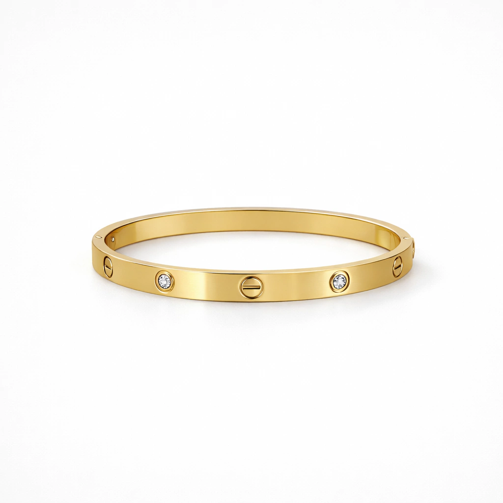 Bracelete Inspiração com Zircônia Dourado Aço Inoxidável