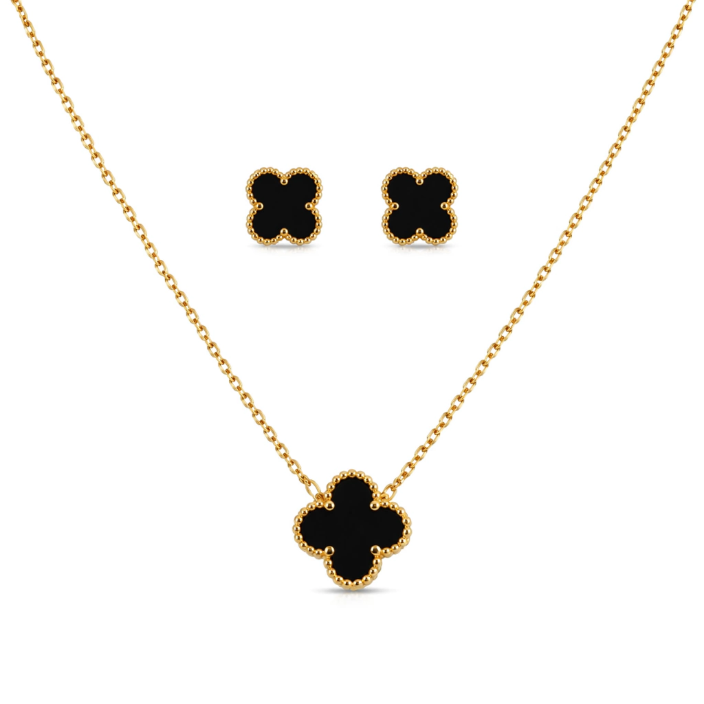 Kit Brinco e Colar Trevo Dourado Aço Inoxidável