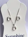 Brincos e colar com gota cristalina e micro zircônias que elevam o visual com sofisticação discreta, ideais para quem busca elegância atemporal.
